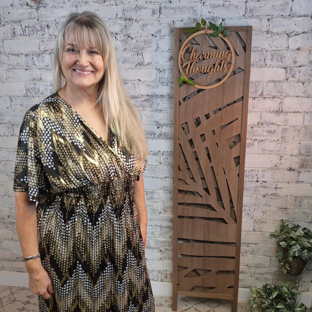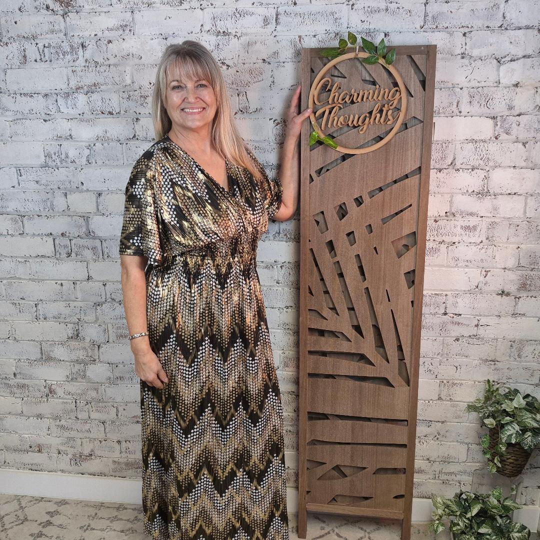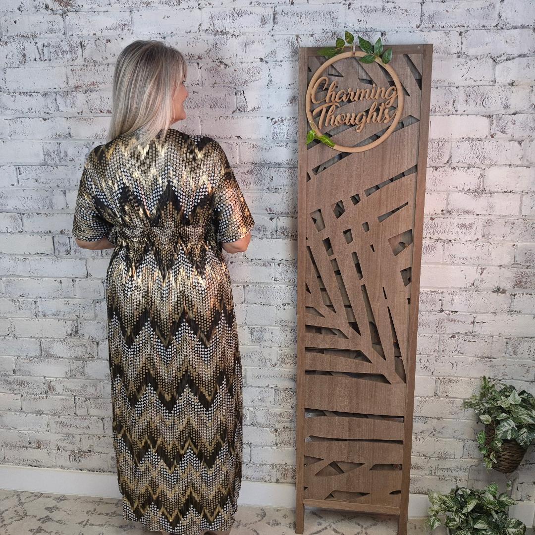 1/2 Sleeve, Elasticated Waist Shimmer Chevron Dress